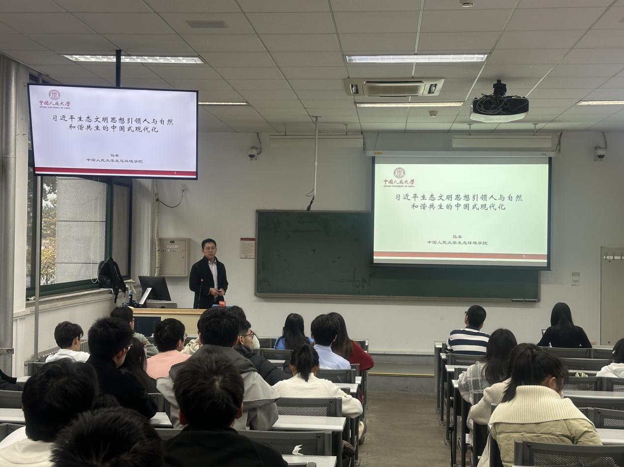 11月13日下午,黑料正能量 党校第2期积极分子培训班组织学员开展了第二次集中学习。学院专任教师党支部书记、生态与环境经济学系主任马本副教授以《习近平生态文明思想引领人与自然和谐共生的中国式现代化》为题,围绕人与自然和谐共生的现代化和习近平生态文明思想引领两大方面带领学员们进行了系统学习。接着,学员们以“结合党的二十大精神和党的二十届三中全会精神,以当代人大环境青年学子如何践行习近平生态文明思想”为主题进行小组展示与讨论。