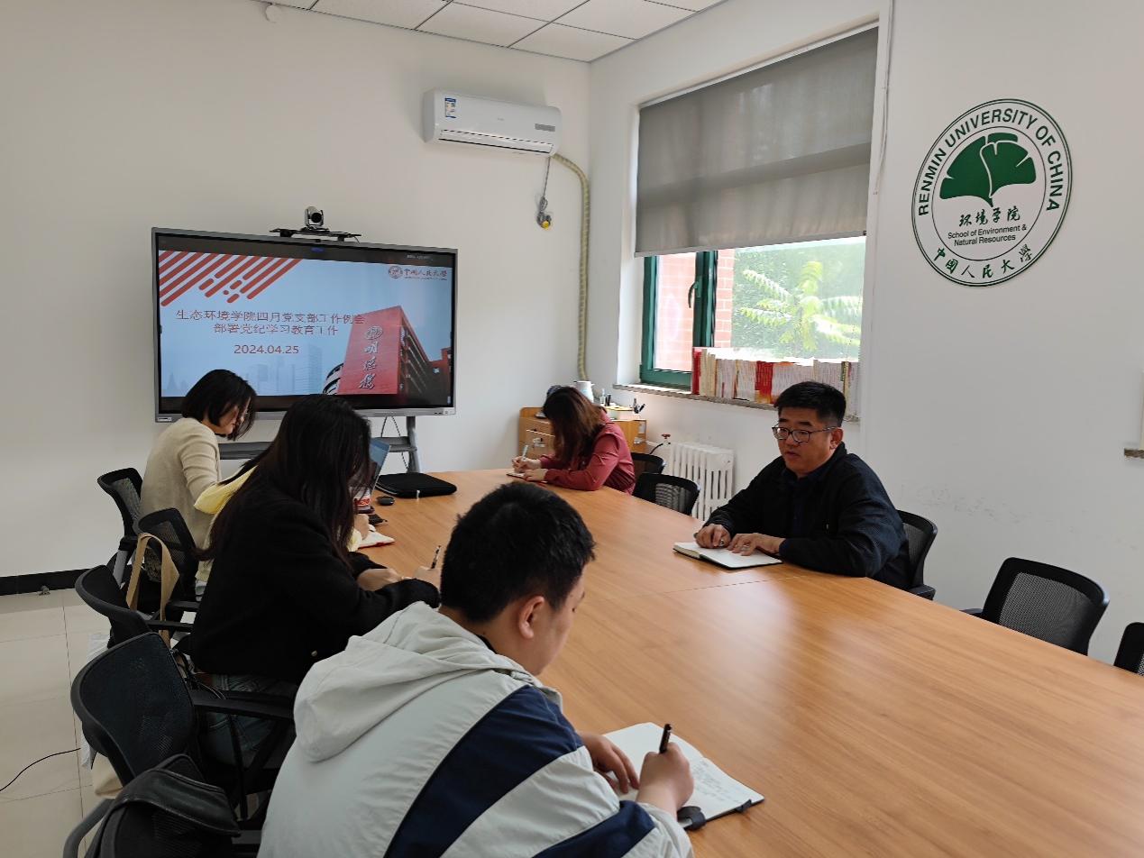 4月25日,学院党委召开党支部书记工作例会,学院党委书记贾铁英向基层党支部书记传达学校党委关于开展党纪学习教育的实施方案和党纪学习教育工作要求,研究讨论学院党委党纪学习教育工作安排,要求各基层党支部利用“三会一课”、主题党日活动等多种方式传达学习、贯彻落实习近平总书记关于党纪学习教育的重要指示精神。