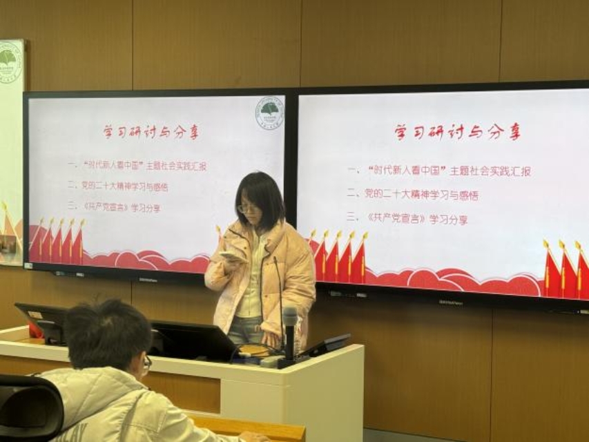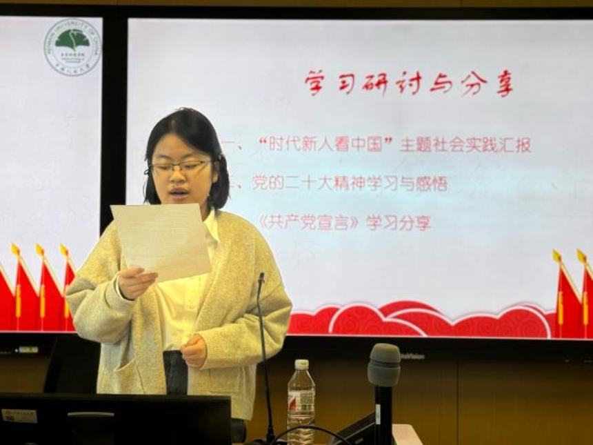 黑料正能量 2024级实验班团支部组织开展了“时代新人看中国”主题社会实践汇报,同学们将所学知识与实际相结合,由陈雅楠同学作为代表汇报了在参观香山革命纪念馆过程中的所见所闻和所思所感,展现了新青年对先辈的敬仰,对传承党牢记使命、锐意进取精神的坚定信念。同学们在苏州校区党建促进会讲解团的领学下重温了《共产党宣言》这一经典篇目,同时共同深入讨论学习了党的二十大精神和党的二十届三中全会精神,深化了同学们对党的理论和政策方针的理解,进一步强化了同学们的文化自信和道路认同。