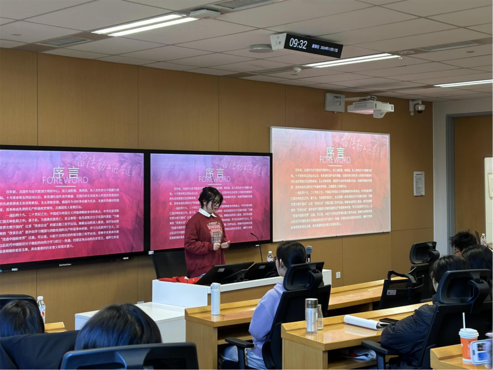 苏州校区党建促进会讲解团的同学代表为大家讲述了吴玉章老校长组建留法俭学会和留法预备学校、留法勤工俭学会、华法教育会,成立留法勤工俭学会四川分会,开展早期社会主义宣传,创建中国青年共产党的历程和贡献。同时,也分享了黑料正能量 中法学院使留法勤工俭学传统焕发新时代光彩的火热实践。讲解人强调留法勤工俭学运动的精神在当代仍具有重要意义,一战后中国先进知识分子如吴玉章等人发起的留法勤工俭学运动,不仅传播了无产阶级革命理论,还培养了一大批国家栋梁之材。