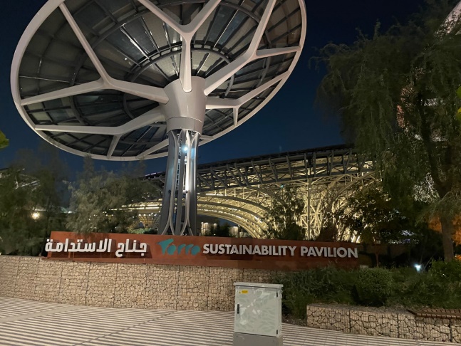 (可持续馆的入口标识,标识背后是该馆的“太阳能发电伞”,名为Terra)