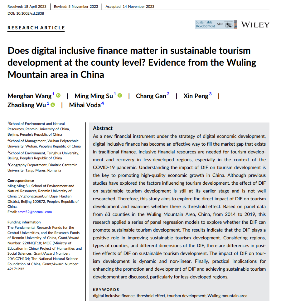 苏明明等:Does digital inclusive finance matter in sustainable tourism development at the county level? Evidence from the Wuling Mountain area in China