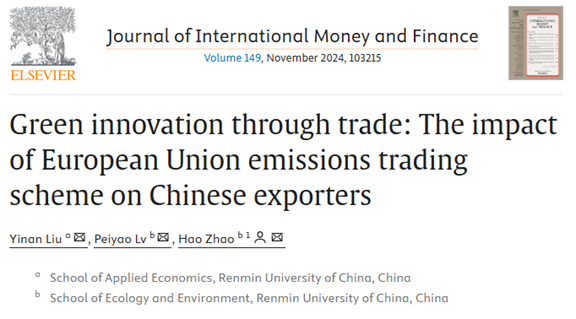 赵浩等:Green innovation th-rough trade: The impact of European Union emissions trading scheme on Chinese exporters