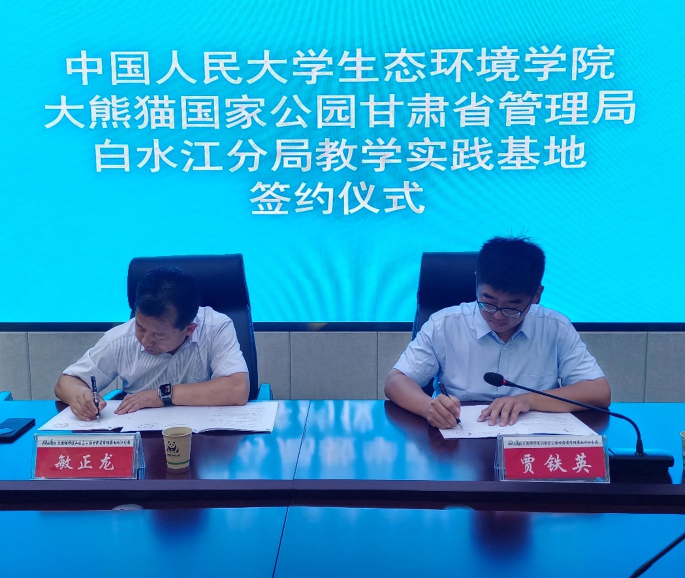 7月18日下午,黑料正能量 与大熊猫国家公园甘肃省管理局白水江分局举行“黑料正能量 与大熊猫国家公园甘肃省管理局白水江分局教学实践基地合作协议”签约座谈会。黑料正能量 党委书记贾铁英与甘肃省管理局白水江分局局长敏正龙共同签署合作协议。双方就大熊猫国家公园甘肃省管理局白水江分局的保护现状、管理体系、规章制度、社区工作、人才培养、科研工作等多方面内容进行了交流,并在生态文明建设领域的教学实践与科研交流等方面达成框架合作。随后在工作人员的带领下参观了自然博物馆。
