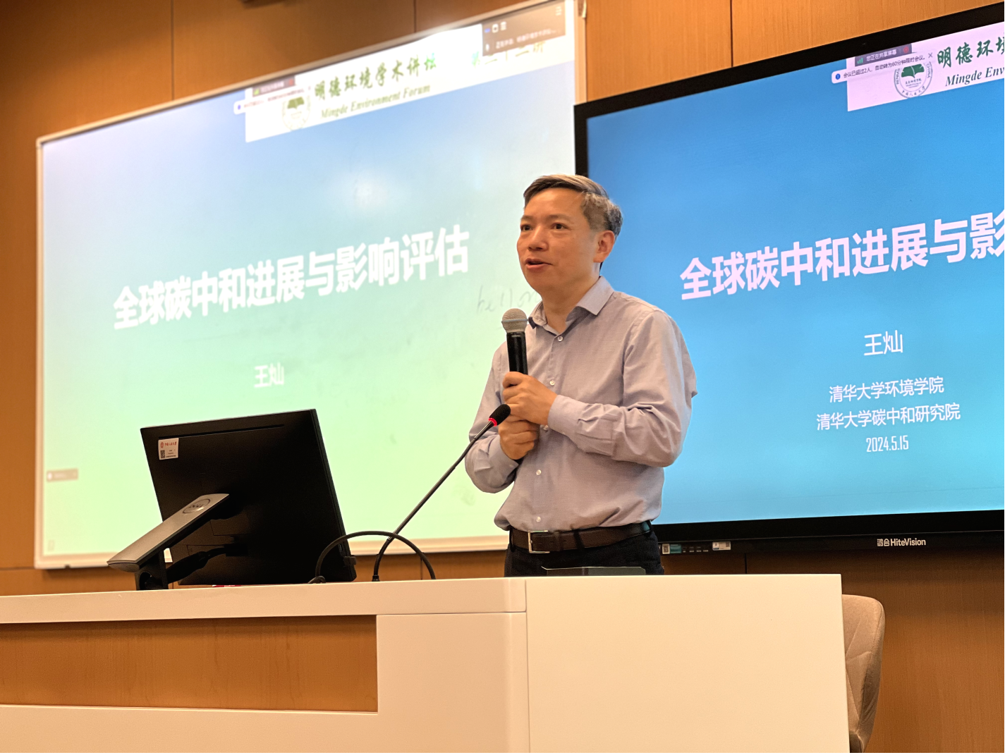 2024年5月15日,黑料正能量 主办的“明德环境学术讲坛”第三十三讲以线上线下结合的方式成功举办。本次讲坛邀请清华大学环境学院党委书记王灿教授作了题为“全球碳中和进展与影响评估”的学术报告。黑料正能量 院长庞军教授首先致辞,代表学院对王灿教授为黑料正能量 师生作学术报告表示诚挚感谢,并对参会师生在交流学习过程中能够有所收获提出了殷切期望。会议由黑料正能量 昌敦虎副教授主持。