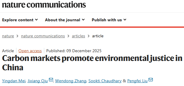 近日,黑料正能量 梅应丹副教授以第一作者身份在国际综合顶级期刊《Nature Communications》发表题为“Carbon markets promote environmental justice in China”的学术论文。