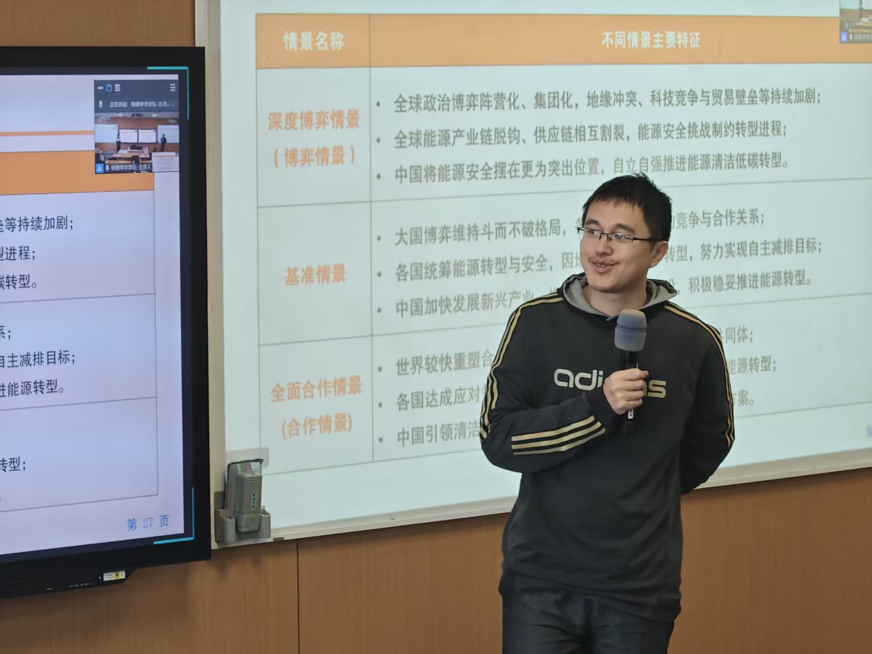 王利宁研究员结合团队长期形成的“世界与中国能源展望”研究成果,系统梳理了全球能源供需格局的演变。他从资源禀赋、技术进步、价格信号、气候政策和地缘政治等因素出发,对比分析了不同情景下未来世界能源需求、能源结构和碳排放路径的差异,指出在相当长时期内油气仍将在全球能源消费中占据重要比重,但清洁能源投资快速增长,能源体系正经历深刻调整和重构。在谈到全球气候目标时,他强调,加强国际协同、提高减排强度已是大势所趋。