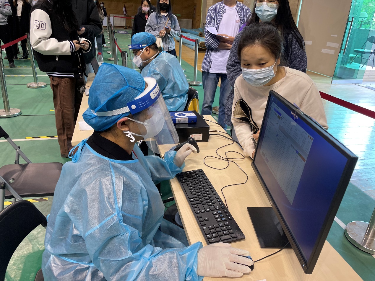 环境学院行政教工党支部党员崔凤骁、邓雨萌,入党积极分子金赛君也积极响应学校号召,主动参与校园核酸检测志愿服务工作,积极投身校园抗疫一线,以高度责任感书写青年教职工的使命担当。