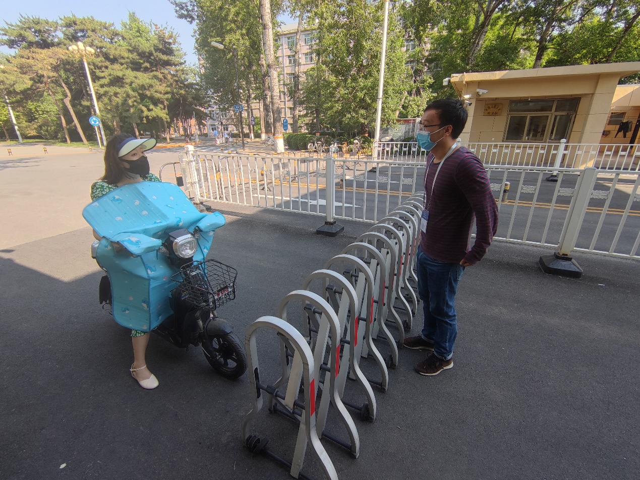在担任志愿者的过程中,我对后勤人员工作的辛苦程度有了更切实的体会,近日北京的天气开始回升,炎炎烈日下,学校各个点位的后勤工作人员的日常疫情防控工作更为不易。每一位后勤工作人员和校园志愿者在疫情防控中都从人文关怀的角度出发,我印象最深的是,有一位学生因骨折急需就医,在这一关键时刻,我与多位后勤人员一起形成了一条完整的“护送链”,全力护送受伤学生,以最快的速度将学生送往医院救治!在战疫期间,校园里的后勤人员是校内疫情防控最坚实的一道防护线,致敬这些最默默无闻但却闪闪发光的人!