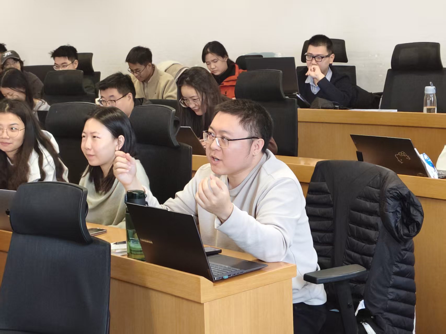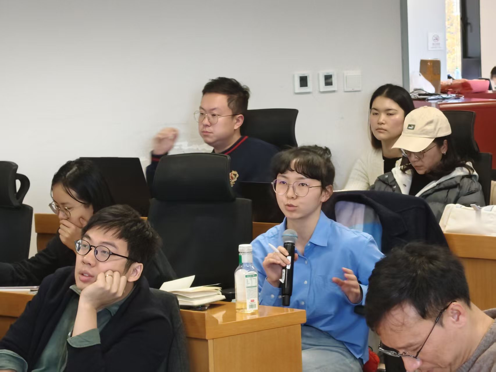 在交流讨论环节,与会师生围绕报告中展示的房价与距离关系图、事件研究结果等,就模型设定、数据构建和识别策略等关键问题与刘鹏飞教授展开了深入交流。大家重点讨论了如何在具体模型中区分外部性效应与土地用途变化带来的供给冲击,在统一框架下处理不同设施、不同区域异质性效应的具体做法。围绕房产税和房地产市场数据在研究中的作用、制度差异,进一步探讨了这些差异对模型可移植性和结果解释所带来的约束,并讨论在新能源布局中如何综合纳入生物多样性等因素。刘鹏飞教授结合具体研究案例,对上述问题作出回应,并分享了研究团队在数据获取、指标构建和与政府部门合作中的学术研究经验,也鼓励同学们开展具有中国特色的环境经济学实证研究。