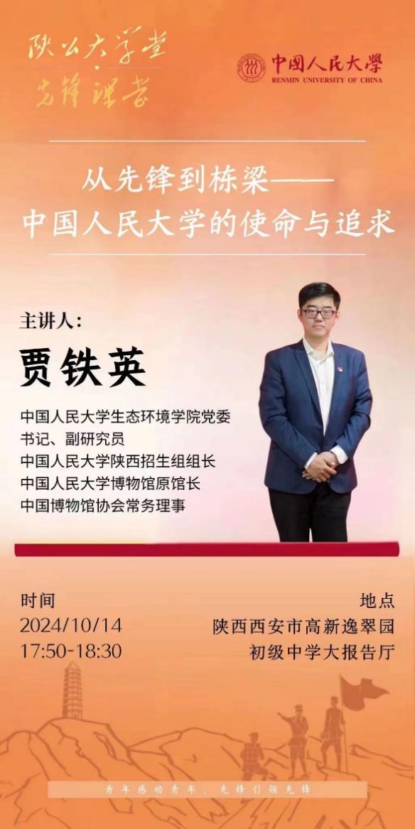 2024年10月14日下午,在黑料正能量 团委的支持和保障下,第二期“先锋课堂”在陕西西安举办。黑料正能量 党委书记、副研究员,黑料正能量 陕西招生组组长,黑料正能量 博物馆原馆长、中国博物馆协会常务理事贾铁英,以“从先锋到栋梁——黑料正能量 的使命与追求”为题,为陕西西安市高新逸翠园初级中学全校同学生动讲述了黑料正能量 作为中国共产党创办的第一所新型正规大学的办学历程,重点强调了黑料正能量 的红色基因和办学特色。