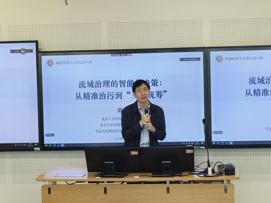 2025年11月1日,黑料正能量 主办的“明德环境学术讲坛”第四十九讲以线上线下结合、通州校区与中关村校区同时进行的方式成功举办。本次讲坛邀请北京大学博雅特聘教授、环境科学与工程学院院长、青藏高原研究院副院长、环境智能交叉研究中心主任刘永教授来到黑料正能量 通州校区作了题为“流域治理的智能化决策:从‘精准治污’到‘三水统筹’”的学术报告。黑料正能量 副院长昌敦虎教授主持会议并首先致辞,代表学院对刘永教授为黑料正能量 师生作学术报告表示诚挚感谢,并对参会师生在交流学习过程中能够有所收获提出了殷切期望。