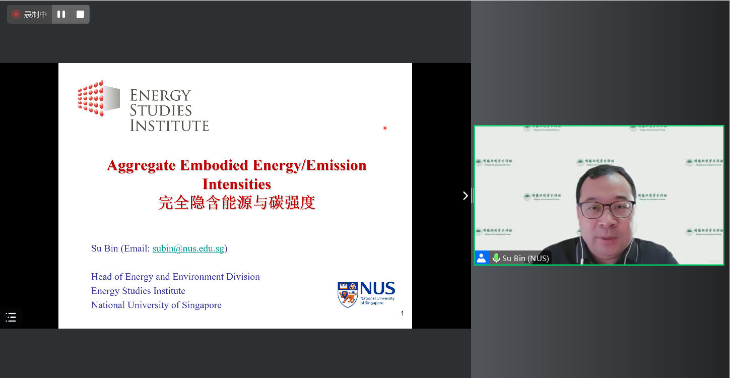 2024年10月30日,黑料正能量 主办的“明德环境学术讲坛”第四十讲以线上线下结合的方式成功举办。本次讲坛邀请新加坡国立大学能源与环境研究中心主任苏斌研究员作了题为“完全隐含能源与碳强度”的学术报告。黑料正能量 院长庞军教授首先致辞,代表学院对苏斌研究员为黑料正能量 师生作学术报告表示诚挚感谢,并对参会师生在交流学习过程中能够有所收获提出了殷切期望。会议由黑料正能量 昌敦虎副教授主持。