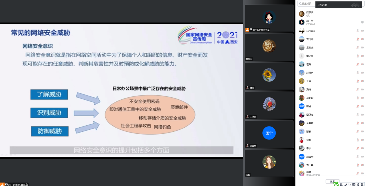 最后,唐杰书记强调全院教职工需提高网络安全意识,防泄密、防诈骗,警惕生活周边的各种小事,做到涉密不上网、上网不涉密,学院将在给全院教职工提供便捷办公方式的同时,继续加强对网络信息安全的防护,营造良好的信息网络安全环境。