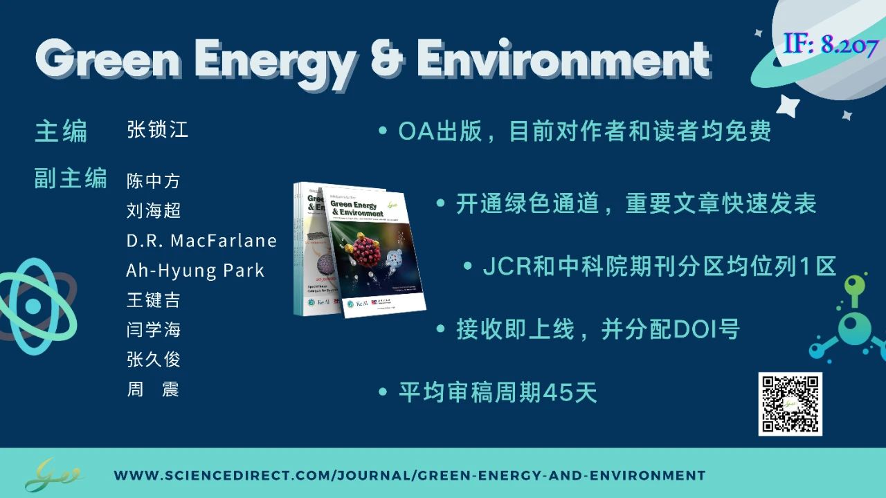 GEE是由中国科学院主管,中国科学院过程工程研究所和科学出版社共同主办的英文学术期刊。立足于绿色能源与环境领域,聚焦前沿命题,突出交叉创新,主要刊载国内外绿色能源、环境、材料、化工等领域的最新研究动态、学科发展趋势和多学科交叉的原创性研究进展、快讯、综述、观点、访谈等,充分展示学科领域的新概念、新方法、新范式。