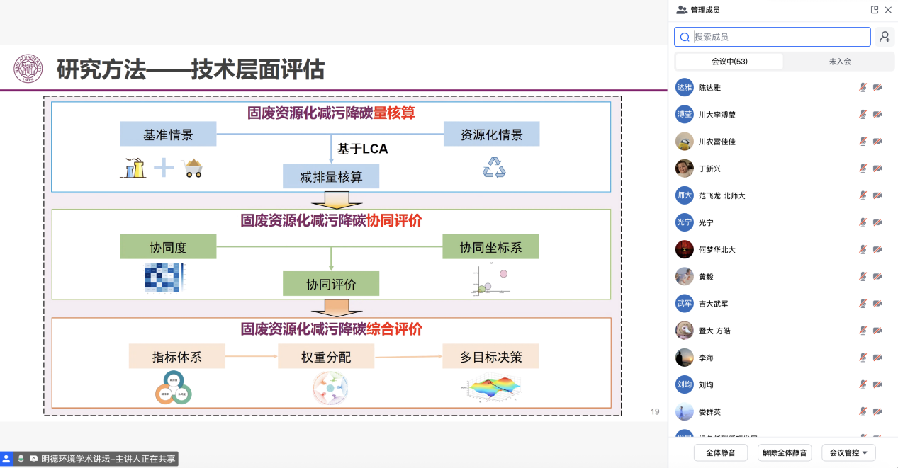 基于研究结论,徐鹤教授提出了尽快形成固废领域“减污”定义的共识、进一步探索适用于不同区域间的横向对比评估方法、尽快建立各类固废环境影响数据库等政策启示。
