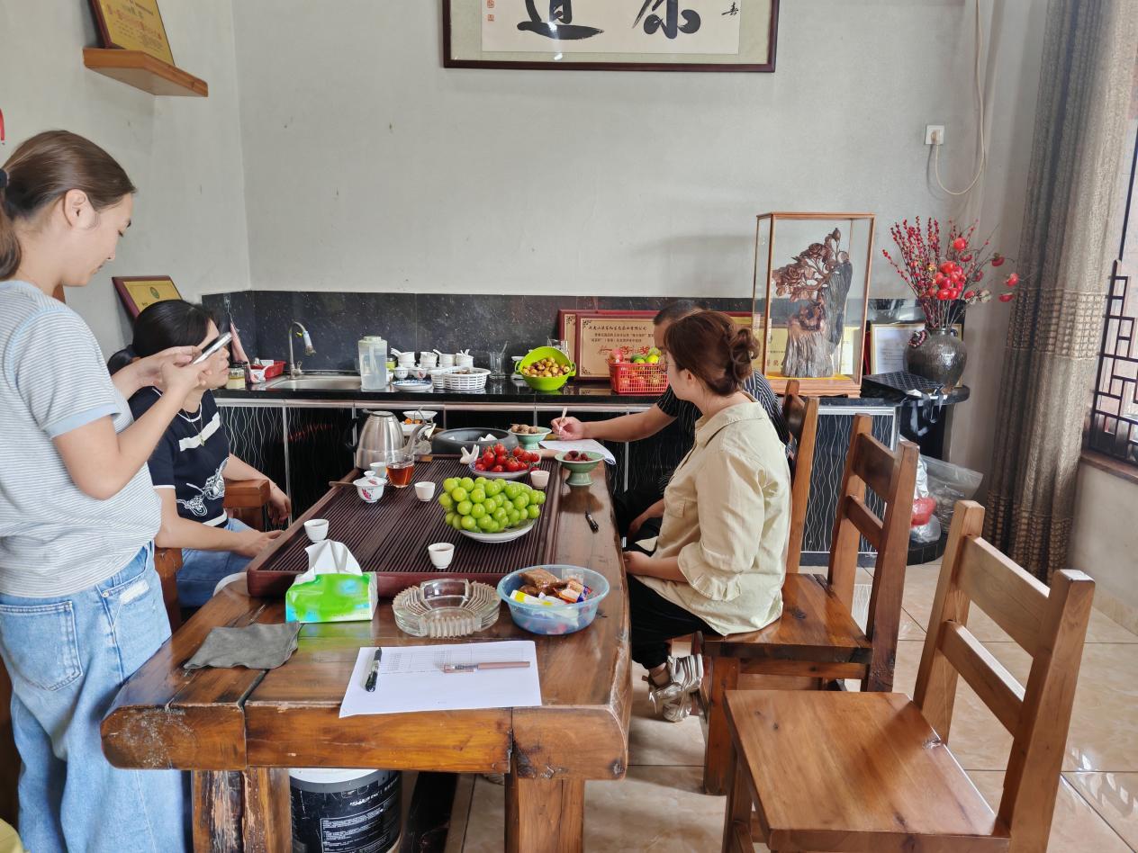 (调研团队与村民交谈、收集茶叶生产的相关数据)