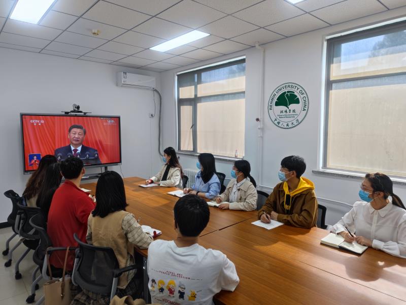 习近平总书记的报告高屋建瓴,振奋人心,在人大师生中引发热烈反响。环境学院团学系统积极响应,组织团学骨干集中收看开幕会,并指导各基层团学组织、团支部通过线上线下相结合的方式观看开幕会,迅速掀起学习党的二十大精神的热潮。大家纷纷表示,盛会鼓舞人心,报告催人奋进,要认真学习、深刻领会党的二十大会议精神,坚定不移听党话、跟党走,踔厉奋发、勇毅前行,谱写新时代的青春之歌!