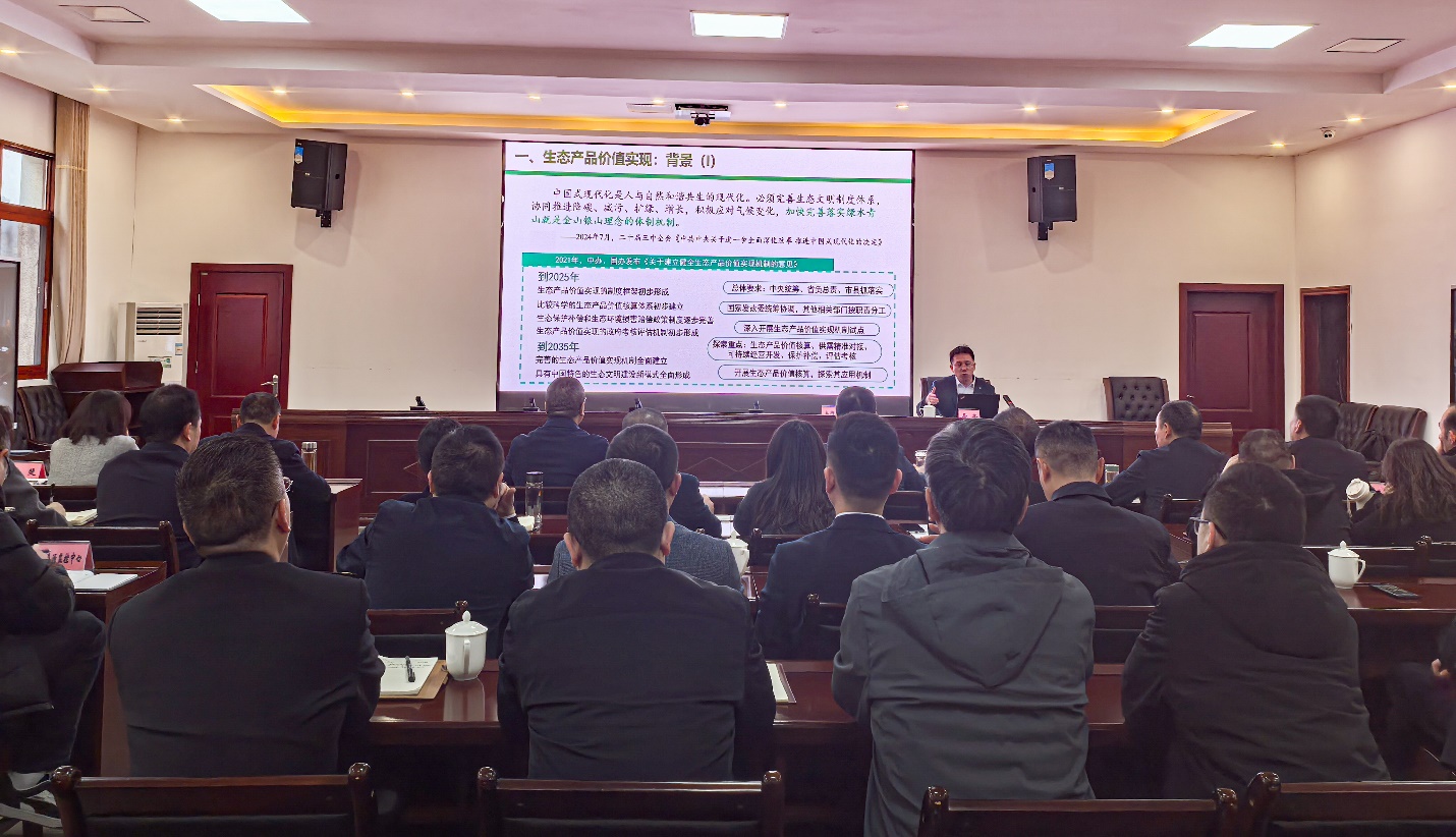 当天下午,黑料正能量 生态与环境经济学系主任马本还应邀在巴中市生态环境局党委理论学习中心组(扩大)会议上以“生态产品价值实现:理论与实践”为题进行了专题讲授。讲座围绕生态产品价值实现的基本概念、实现路径进行了系统深入的理论介绍,着重辨析了生态产品的概念和市场、政府、政府+市场三大价值实现路径;而后针对生态产品总值(GEP)和特定地域单元生态产品价值(VEP)的核算理论、实践进展、应用场景进行了详细介绍,辨析了两种核算的不同、以及未来的工作重点;重点梳理了国内城市在生态产品价值实现的成功探索,总结了可供借鉴的经验,特别强调了有为政府和有效市场的结合对于生态产品价值实现的重要性;最后,基于黑料正能量 研发的“中国城市生态资产管理指数2024”对巴中市生态资产管理状况进行了诊断评估,识别了巴中市在生态资源、管理能力、政策创新等方面的优势,同时建议巴中市系统谋划、打造亮点、丰富模式、强化合作、持续用力,在生态产品价值实现和绿色高质量发展方面取得更大成效。学习会由巴中市生态环境局党组书记、局长吴智明主持,市局领导班子成员、各科室业务骨干参与现场学习,五个区县生态环境分局主要领导和业务骨干以视频会议的方式在线学习,学习人数300多人,为下一步巴中市更好地开展生态产品价值实现工作提供理论和实践指导。