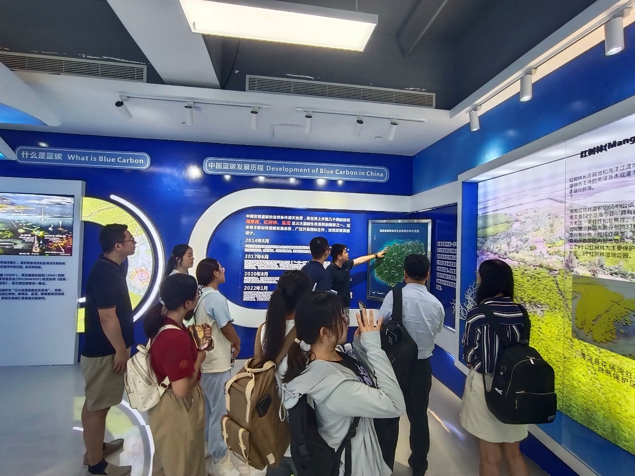 调研团首先对海南省环科院积极探索区域蓝色碳汇的试点实践进行了解。海南环科院因地制宜开展蓝碳储备调查,在海口考察了红树林和渔业碳汇的现状,在万宁观测了红树林和海草床等蓝碳生态系统,在三亚推动了蜈支洲岛海洋牧场示范基地建设……鉴往知来,砥行致远。通过不断总结经验,环科院以蓝碳研究促进生态建设,成为我国“双碳工作优等生”。