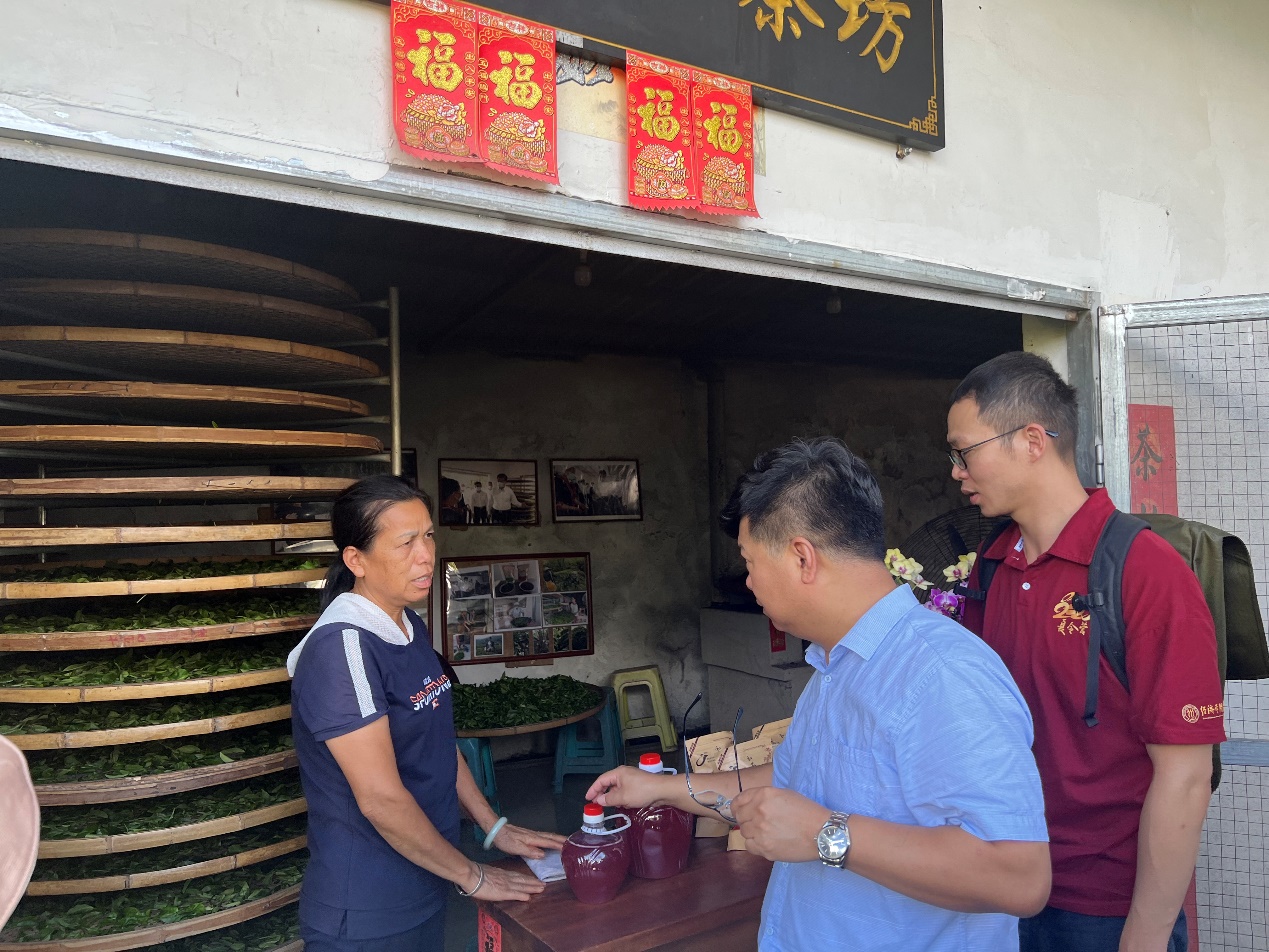 调研团沿着盘山公路来到毛纳村,从村口的游客服务中心出发,沿着总书记走过的村道走进村子,溪水潺潺,满目青翠。沿途设有茶文化体验中心和特产售卖点,调研团来到总书记参观过的茶坊,了解手工茶叶制作过程,之后与农户开展深入交谈。