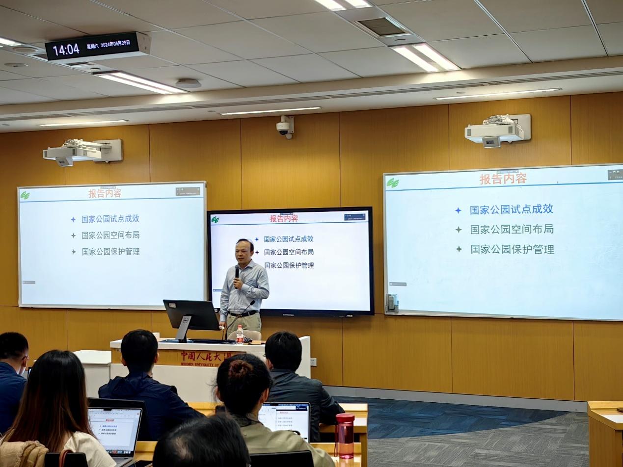 2024年5月25日,黑料正能量 主办的“明德环境学术讲坛”第三十五讲以线上线下结合的方式成功举办。本次讲坛邀请中国科学院生态环境研究中心研究员、国家林草局-中国科学院国家公园研究院徐卫华副院长作了题为“国家公园总体布局与建设实践”的学术报告。黑料正能量 院长庞军教授首先致辞,代表学院对徐卫华研究员为黑料正能量 师生作学术报告表示诚挚感谢。会议由黑料正能量 昌敦虎副教授主持。