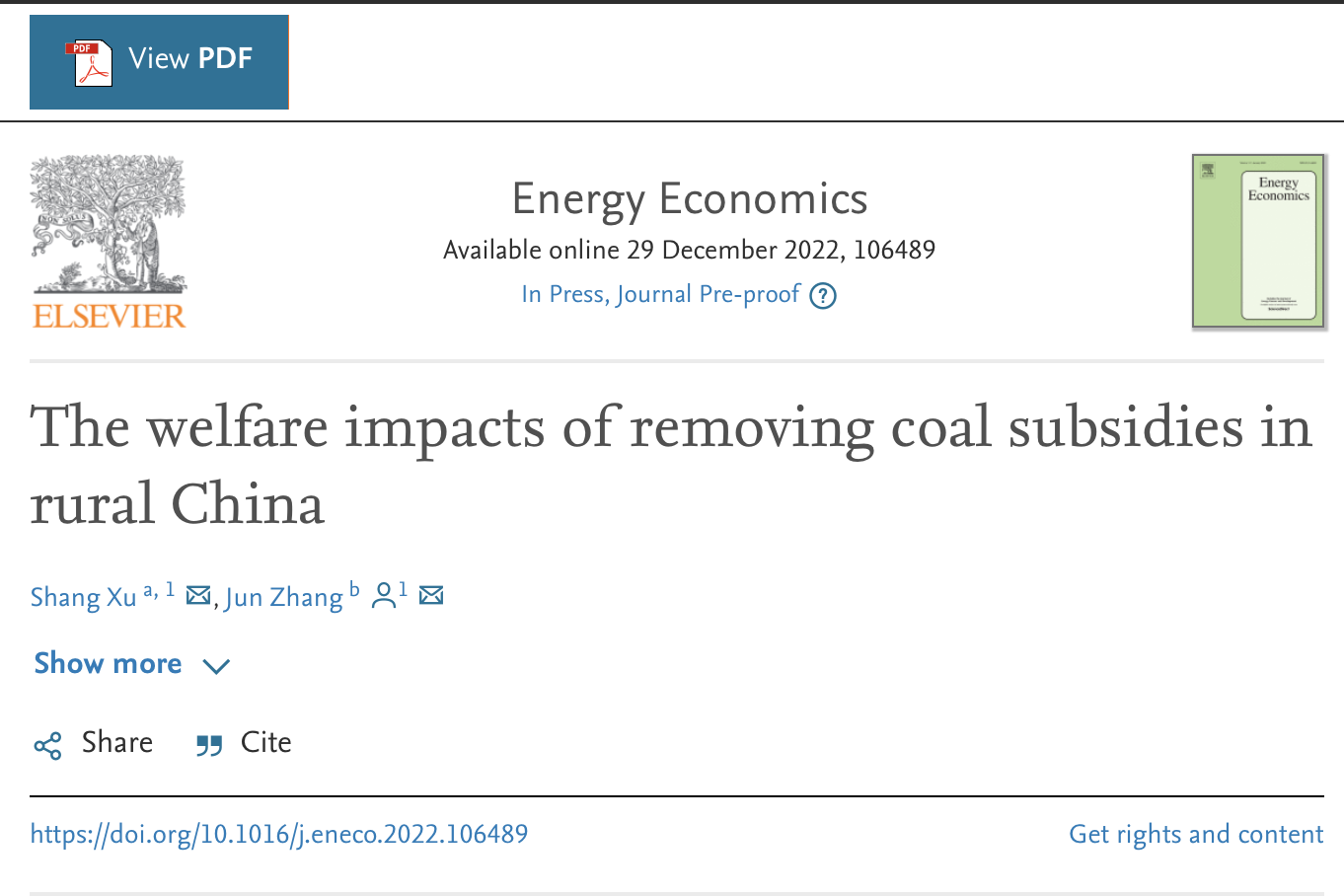 近日,环境学院助理教授徐上以第一作者身份在能源经济学领域国际权威期刊Energy Economics发表论文“The welfare impacts of removing coal subsidies in rural China”。该论文将居民能源需求系统估计和数值模拟的方法相结合,探讨取消煤炭补贴的政策对中国农村地区居民能源消费特征、居民福利和碳排放的影响。利用中国家庭能源消费调查的微观数据,该研究量化发现取消煤炭补贴造成的农村居民福利损失约占其年能源消费支出的7.2%。与此同时,拥有多元能源消费结构的居民更容易通过其他能源商品替代煤炭来降低潜在的福利损失。因此,取消煤炭补贴的政策在我国农村地区具有递减的福利影响。研究还发现,虽然该政策成功驱使农村地区消费更多的电力和天然气等清洁能源,农村能源消费的总碳排放却不降反增,这主要是由于农村居民大幅增加电力消费和我国高排放和低效率的发电特征导致的。这些结论对我国乃至发展中国家能源改革和碳减排政策具有重要的启示意义。