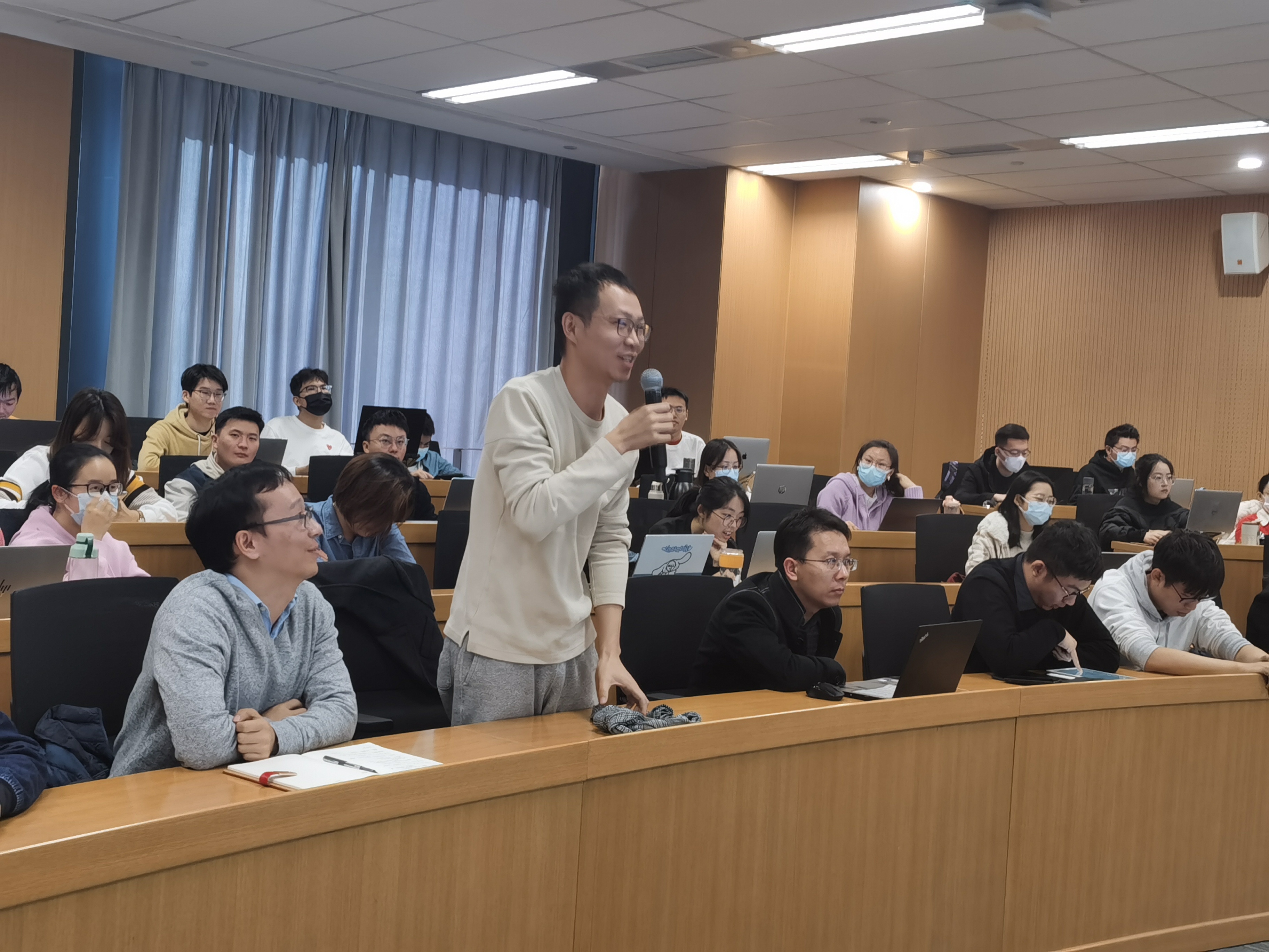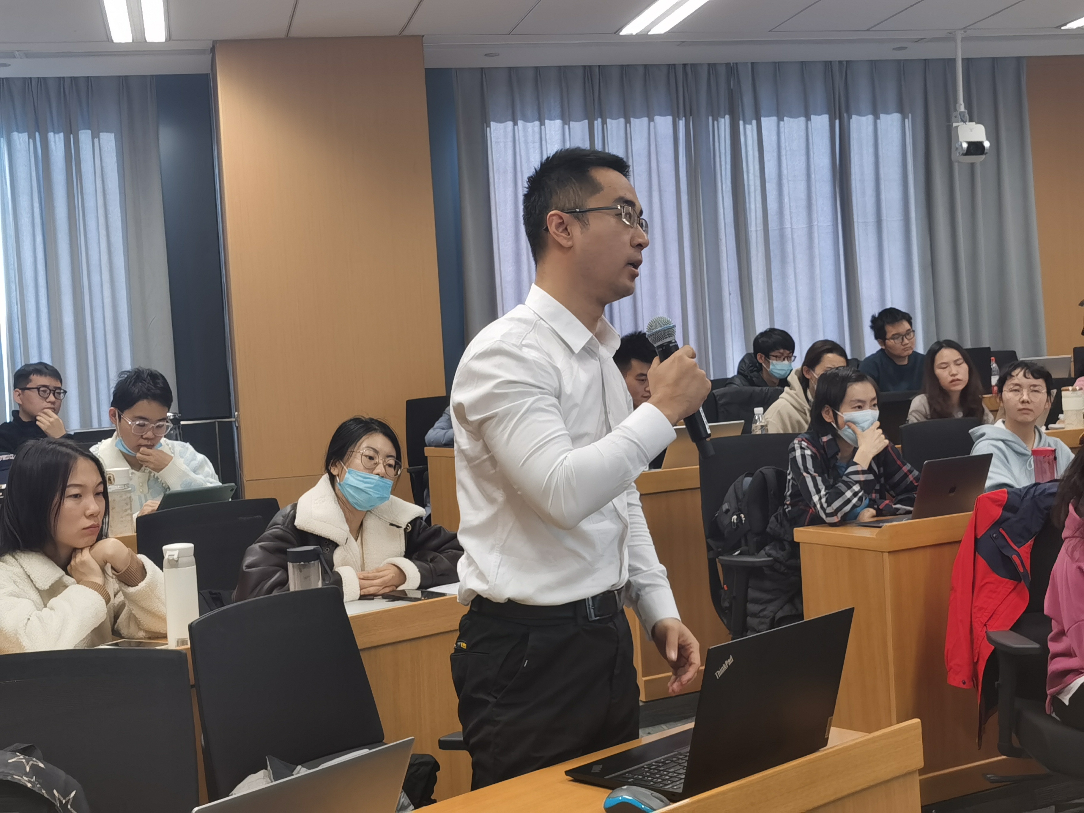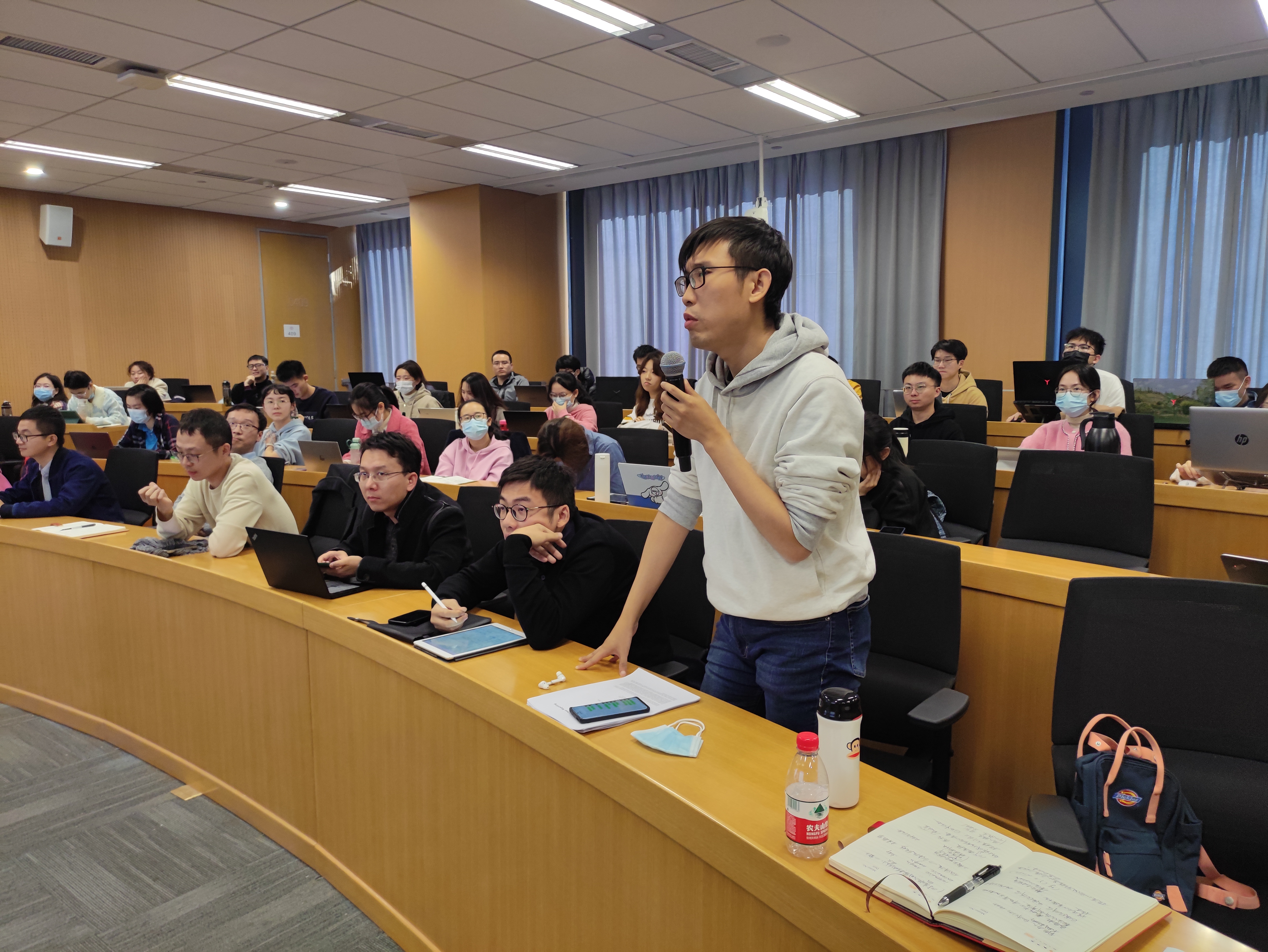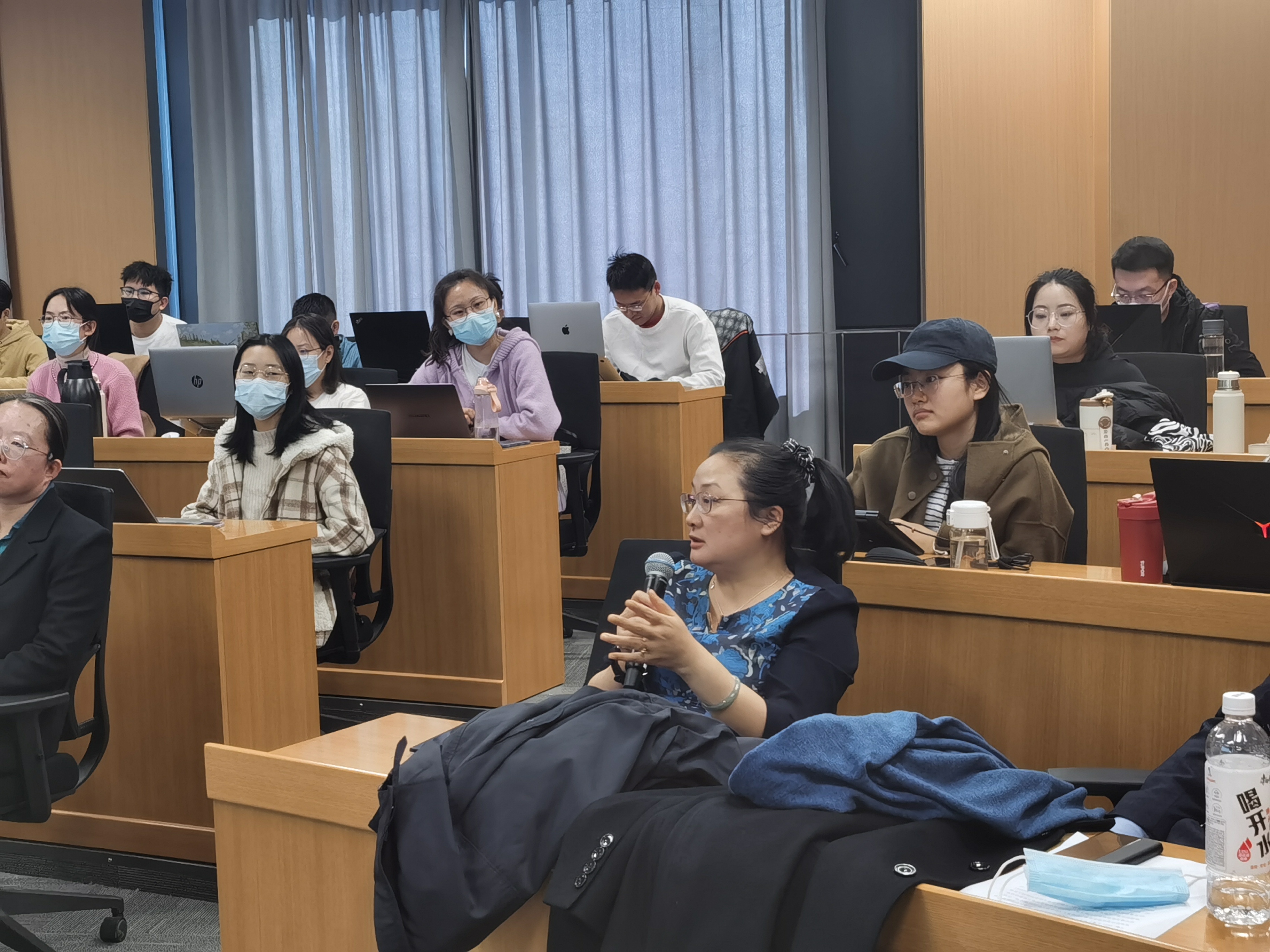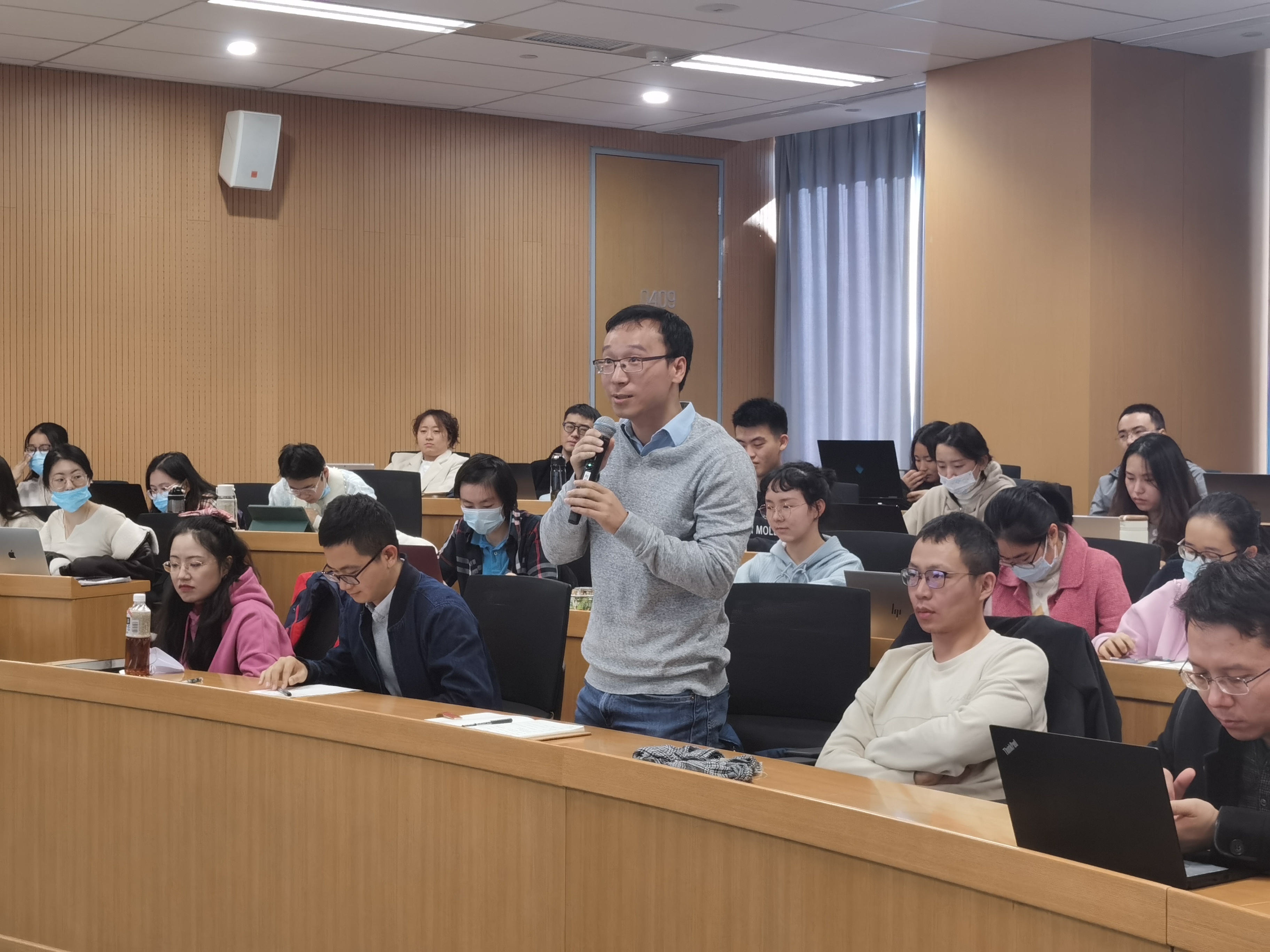 在交流讨论环节,与会师生针对学术报告中关于变量设定、估计策略、异质性分析的划分标准、历史气温的影响、与工业企业数据库匹配的可行性、作用机制识别等问题,与王敏副教授进行了深入探讨,学术氛围热烈。
