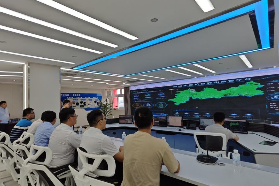8月7日下午,调研团队来到宜宾市屏山县调研该县在GEP核算及生态产品价值实现方面开展的工作和取得的成绩。屏山县是宜宾市最早开展GEP核算试点的区县,已连续三年开展GEP核算工作,在GEP核算和成果应用等方面积累了丰富的经验。调研团队一行在屏山县委常委、副县长王晖等领导同志的陪同下,首先参观了屏山县生态价值转化数智平台。该平台集成GEP核算结果、生态资源分布、招商推介、土地利用等重要信息,能够精准化展示该县生态资源分布、生态价值大小、价值实现项目进展等,为落实绿水青山就是金山银山理念提供了一个集信息汇总、价值呈现、项目集成等为一体的多功能数字化智慧化展示推介平台。
