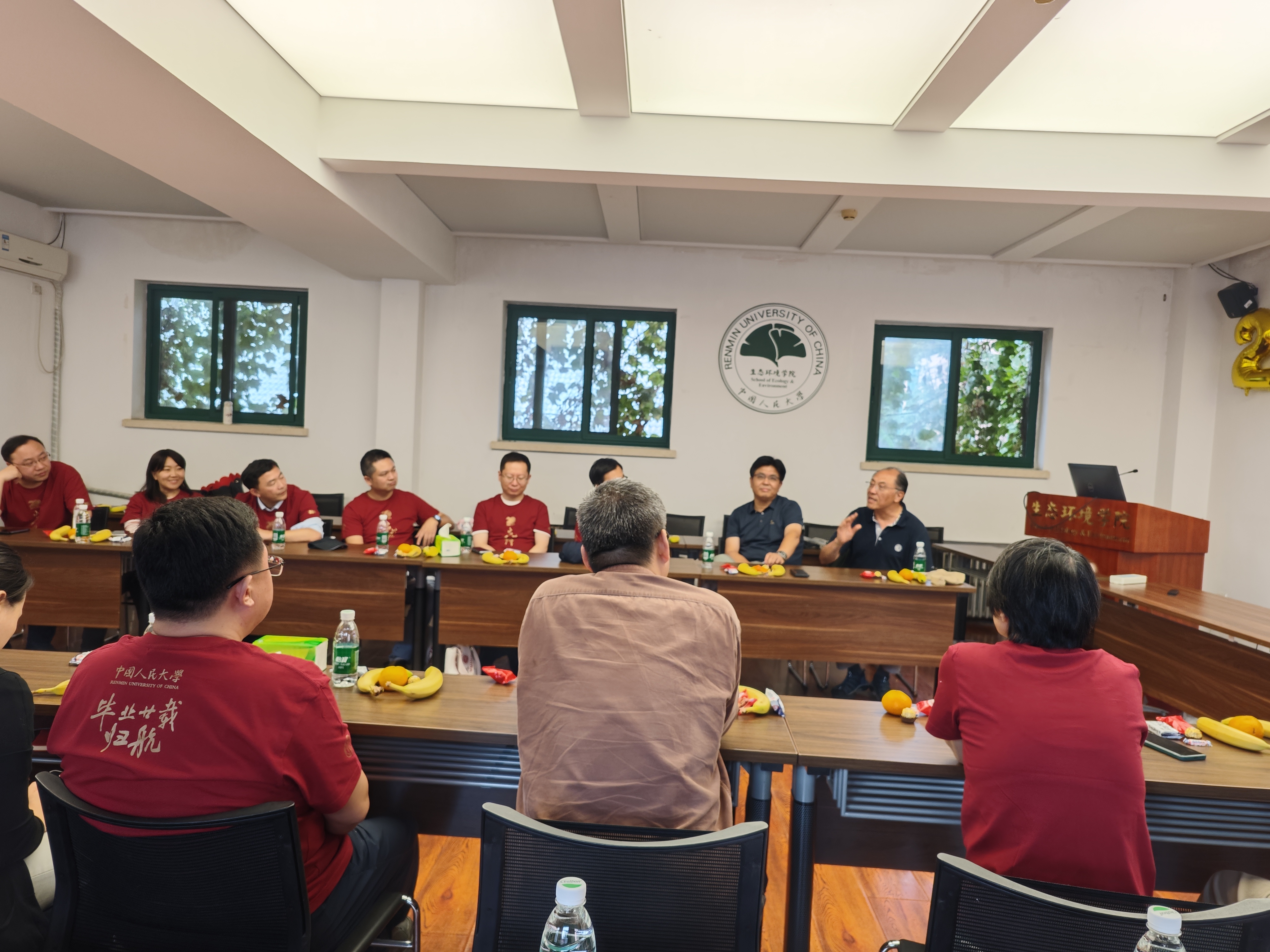 座谈会尾声,原环境学院院长马中作总结发言。他回顾了学院创办的初心与历程,强调生态环境事业是关乎人类未来的重要领域,并寄语校友们在各自工作岗位上砥砺奋进,同时也要平衡好工作和家庭之间的关系,保持身心健康,期待大家常回家看看。