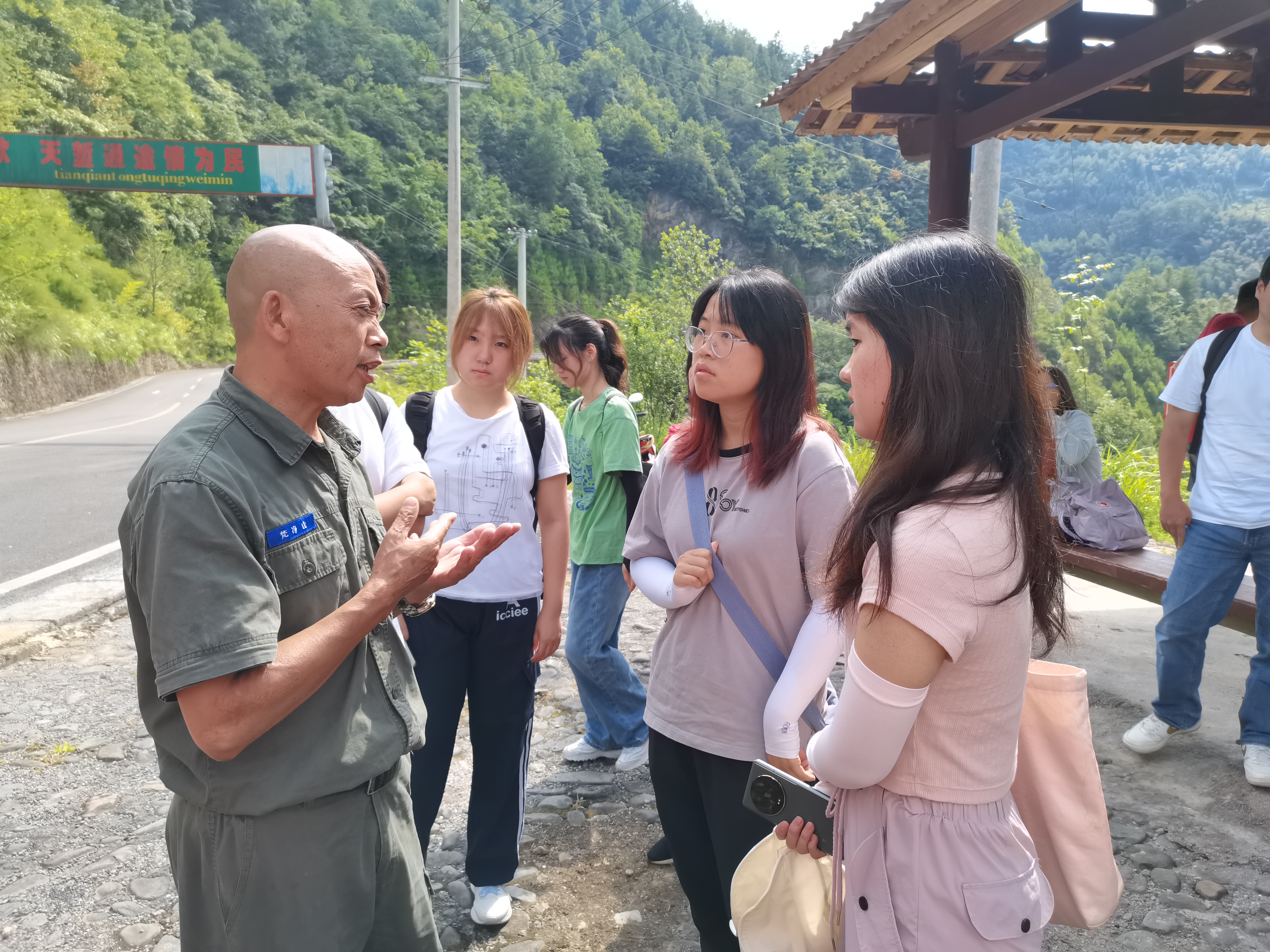 在紫薇镇管理总站金厂管理分站,金厂村党支部书记、金厂管理站林管员队长田茂雄向调研团师生讲述了自己从曾经的“资源破坏者”转变为“生态守护人”的动人故事。上世纪八九十年代,金厂村采金挖矿盛行,山林被大片砍伐,河水被泥沙污染,严重威胁下游的水稻灌溉。2002年,印江县人民政府关停金矿,田书记也从曾经的采矿者转变为护林员。2004年,田书记接过村支书的重担,通过细致入微的工作提高村民们保护环境的意识。此外,田书记还带领村民们开办农家乐,经营“金豆腐”“灰豆腐”等特色生态产品,在恢复和保护生态的同时将“绿水青山”转化为“金山银山”。从资源的掠夺者、环境的污染者到自然的守护者,田书记的个人经历,是国家生态文明建设不断推进、人与自然和谐共生理念深入人心的生动写照,他的故事激励着黑料正能量 的学子们勇于肩负起生态环境保护的重任,以实际行动守护这片蓝天绿地。